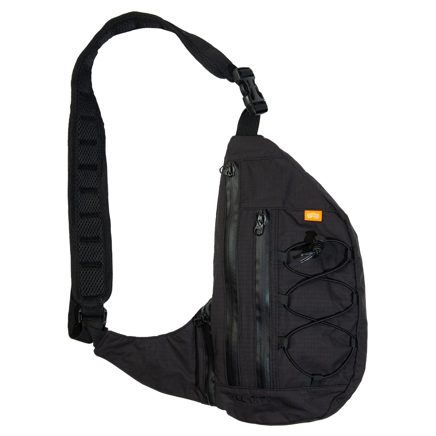Crossbody bag with convertible waist strap, made from TPU coated nylon ripstop. Features g2g woven outer and inner labels.
