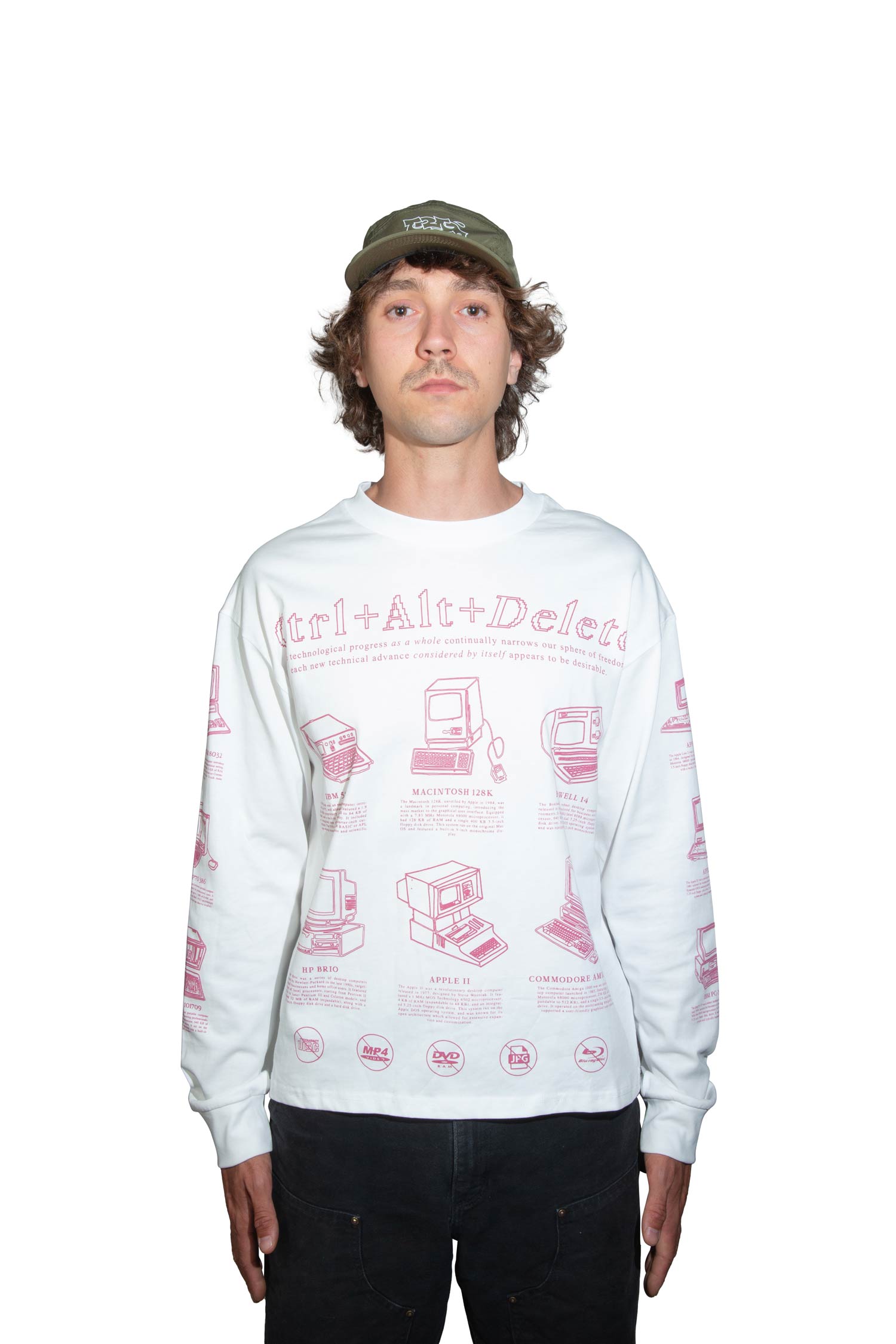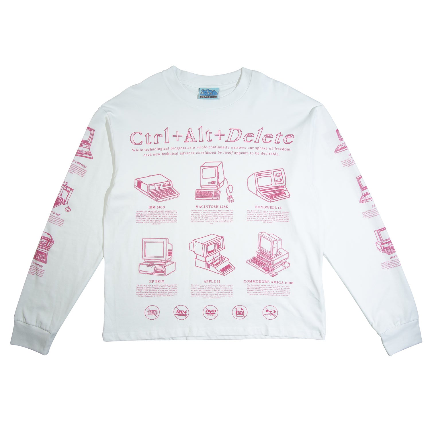 Our classic long sleeve tee with screen printed Ctrl+Alt+Delete graphic on the front and sleeves. Includes branded inner and outer labels.