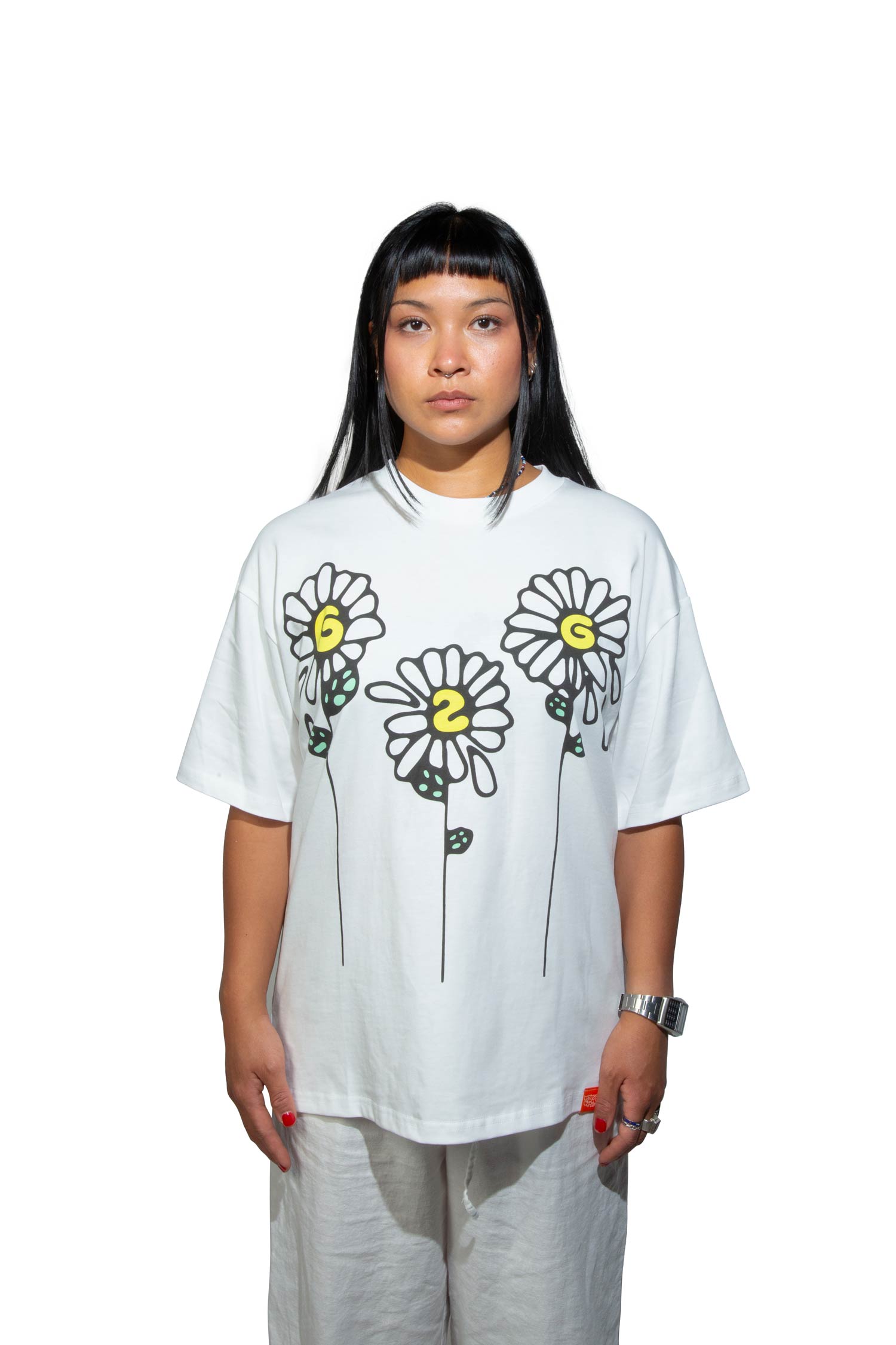 Our classic tee with screen printed g2g Daisy graphic on the front. Includes branded inner and outer labels.