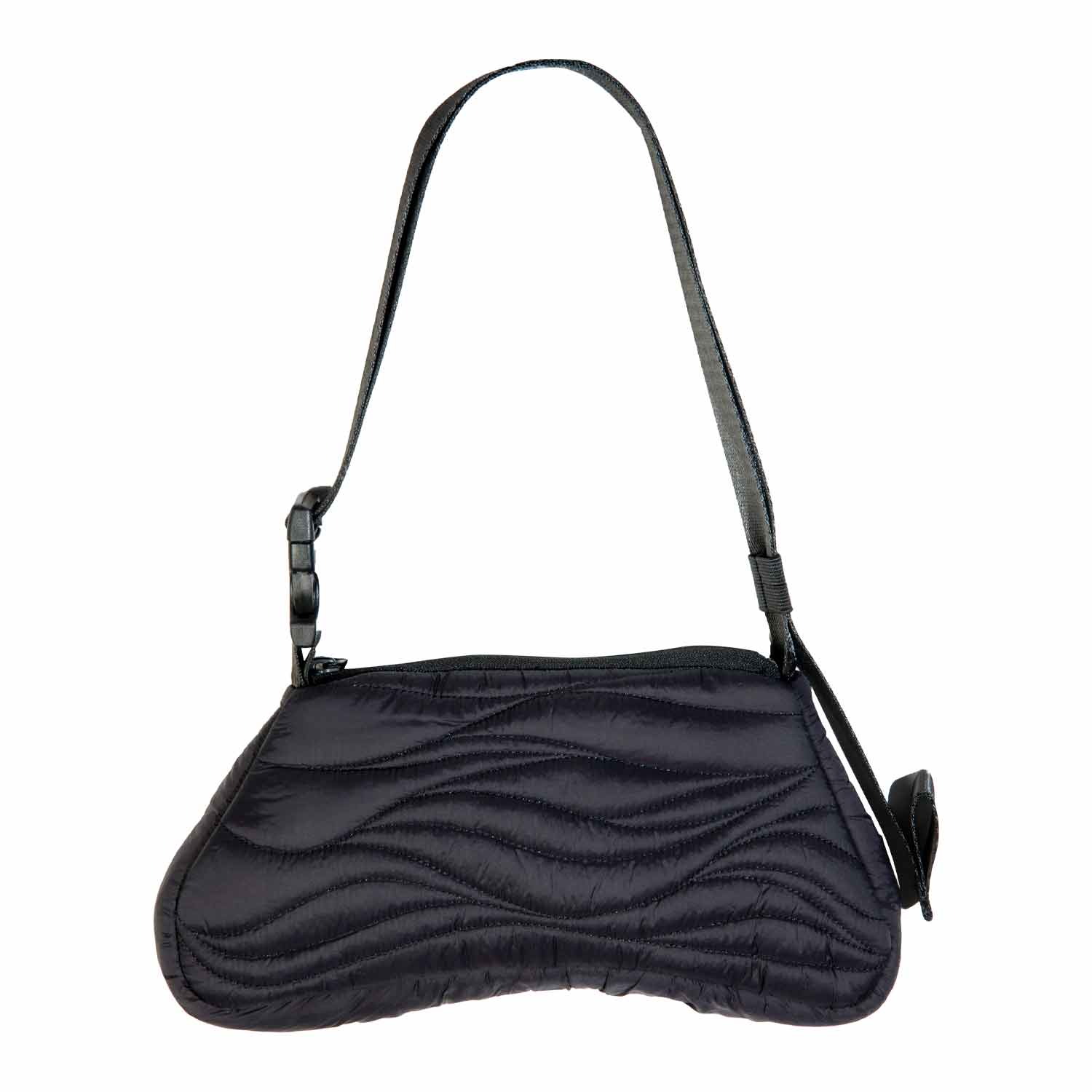 An organic-shaped handbag inspired by the sand dunes on Arrakis. Made with water resistant nylon taffeta and polyester insulation.
