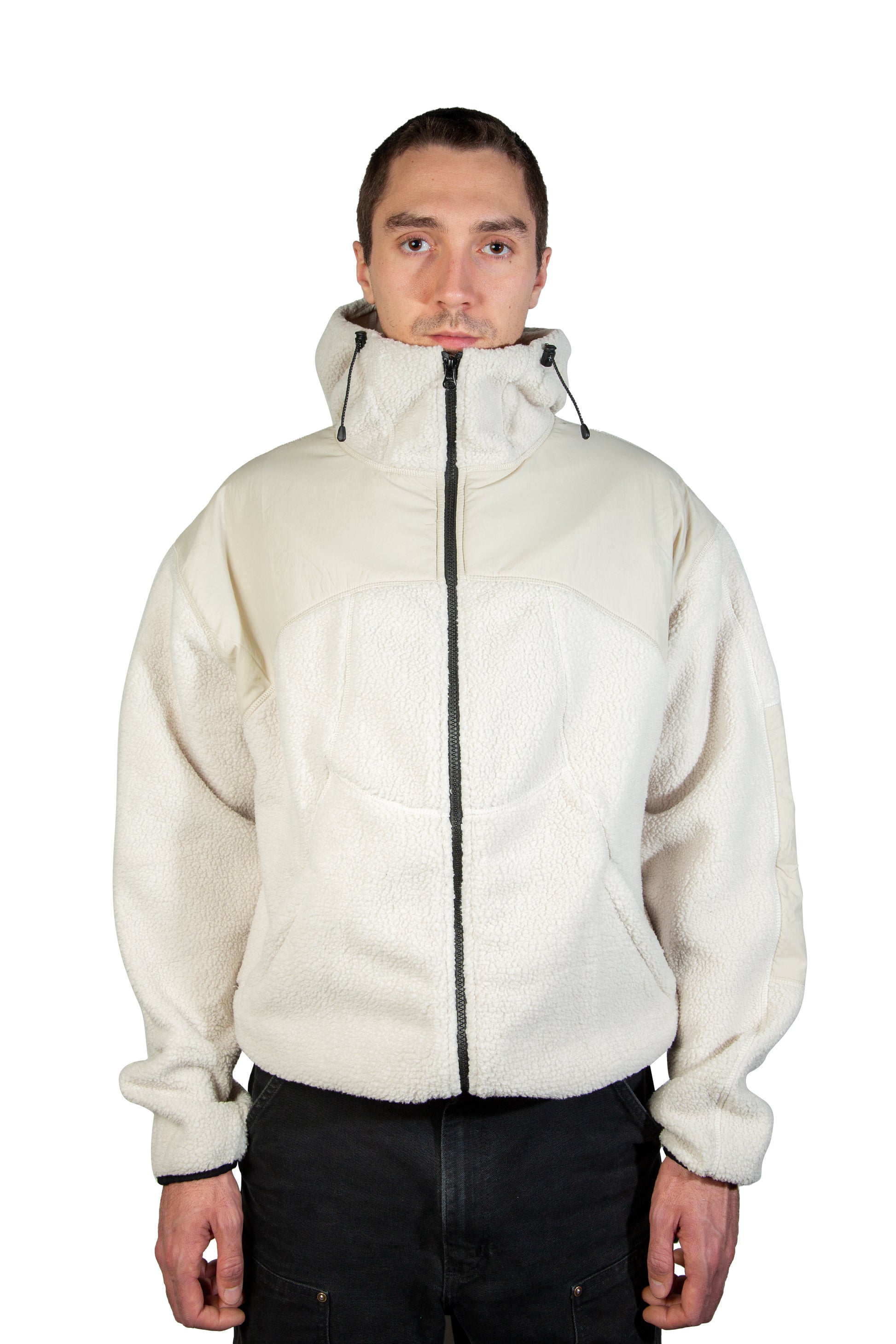 The g2g High Pile Fleece Jacket is cut with a boxy, relaxed silhouette featuring a drop shoulder and plush high-pile fleece for warmth and comfort.