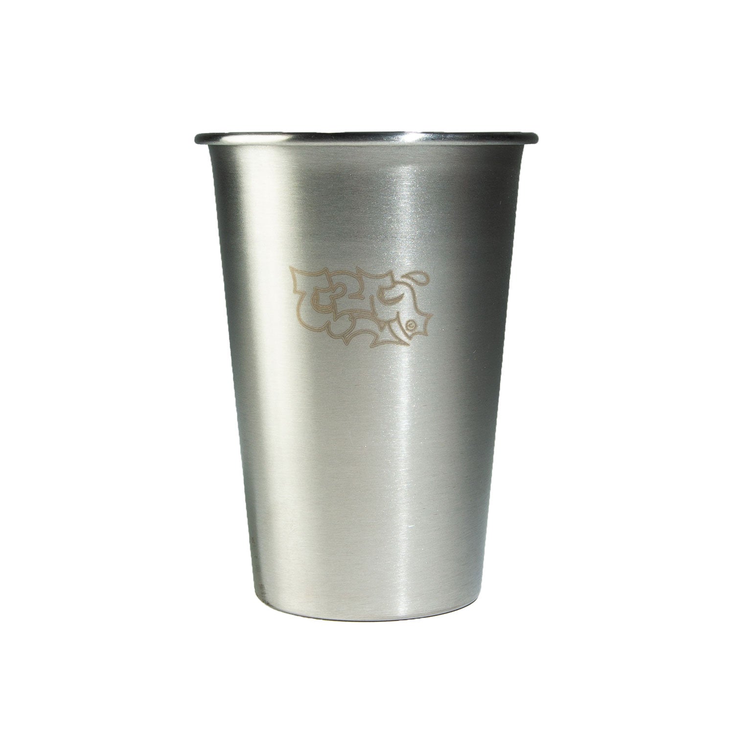 SUS 304 Stainless Steel cup (16oz), laser etched with our signature g2g throwie logo.